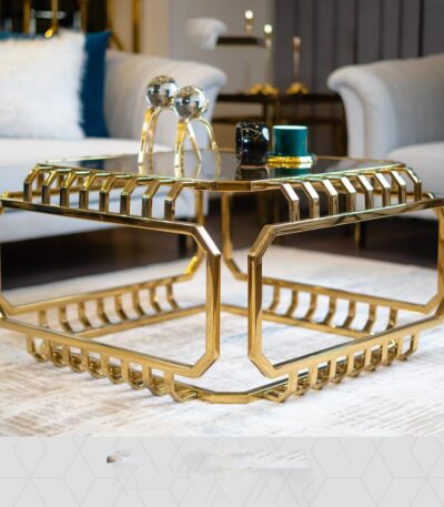 تربيزه سنتر مودرن استانلس وزجاج فاميه – 80×80×45 سم