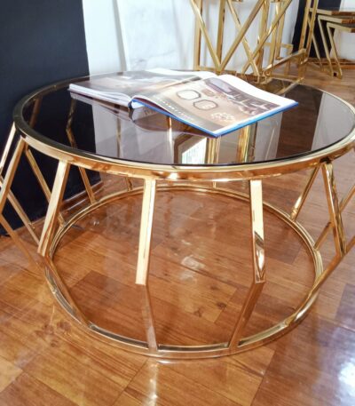 تربيزه سنتر مودرن استانلس 304 مختوم بالزجاج الفاميه – قطر 80 سم × ارتفاع 45 سم
