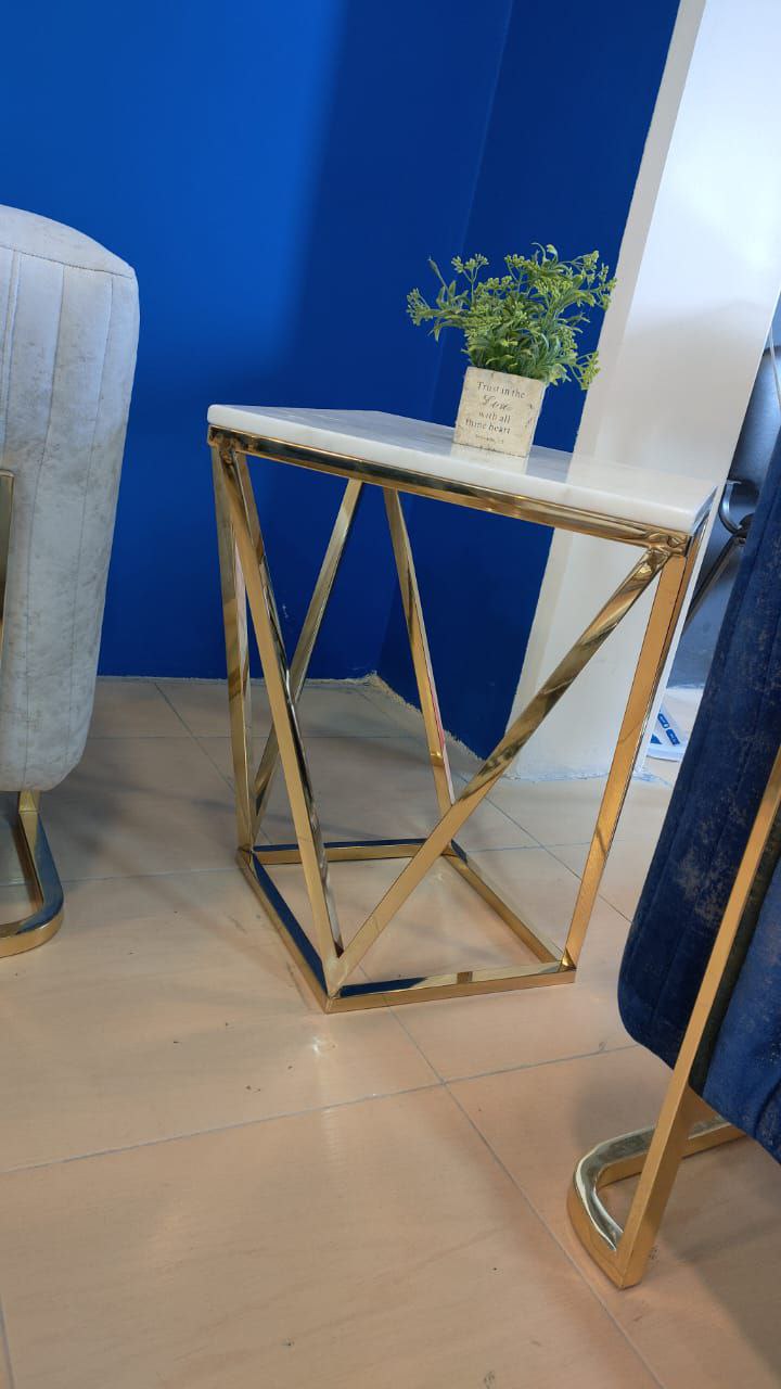 تربيزاة جانبيه استانلس 201 بالرخام طبيعى ابيض كراره تركى   مقاس 45سم *45سم ارتفاع 55سم