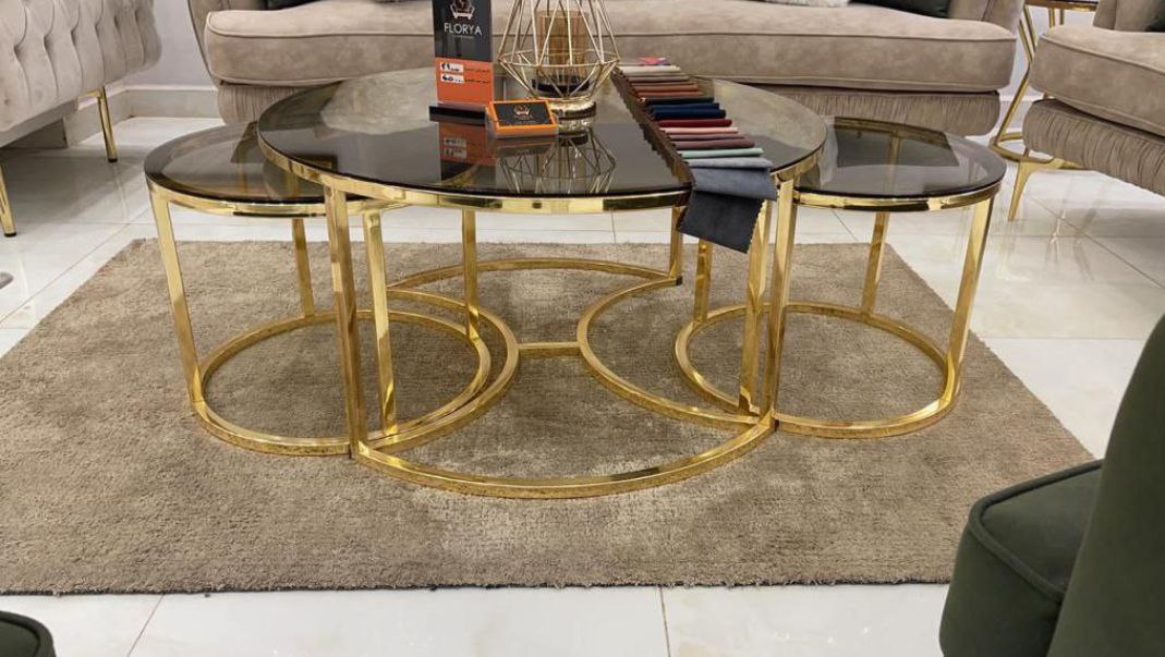 تربيزاة سنتر استانلس 304 مختوم طقم ثلاثى متداخل مقاس الكبيره قطر 80 سم ارتفاع 45 سم. الصغيره قطر 50سم ارتفاع 40سم