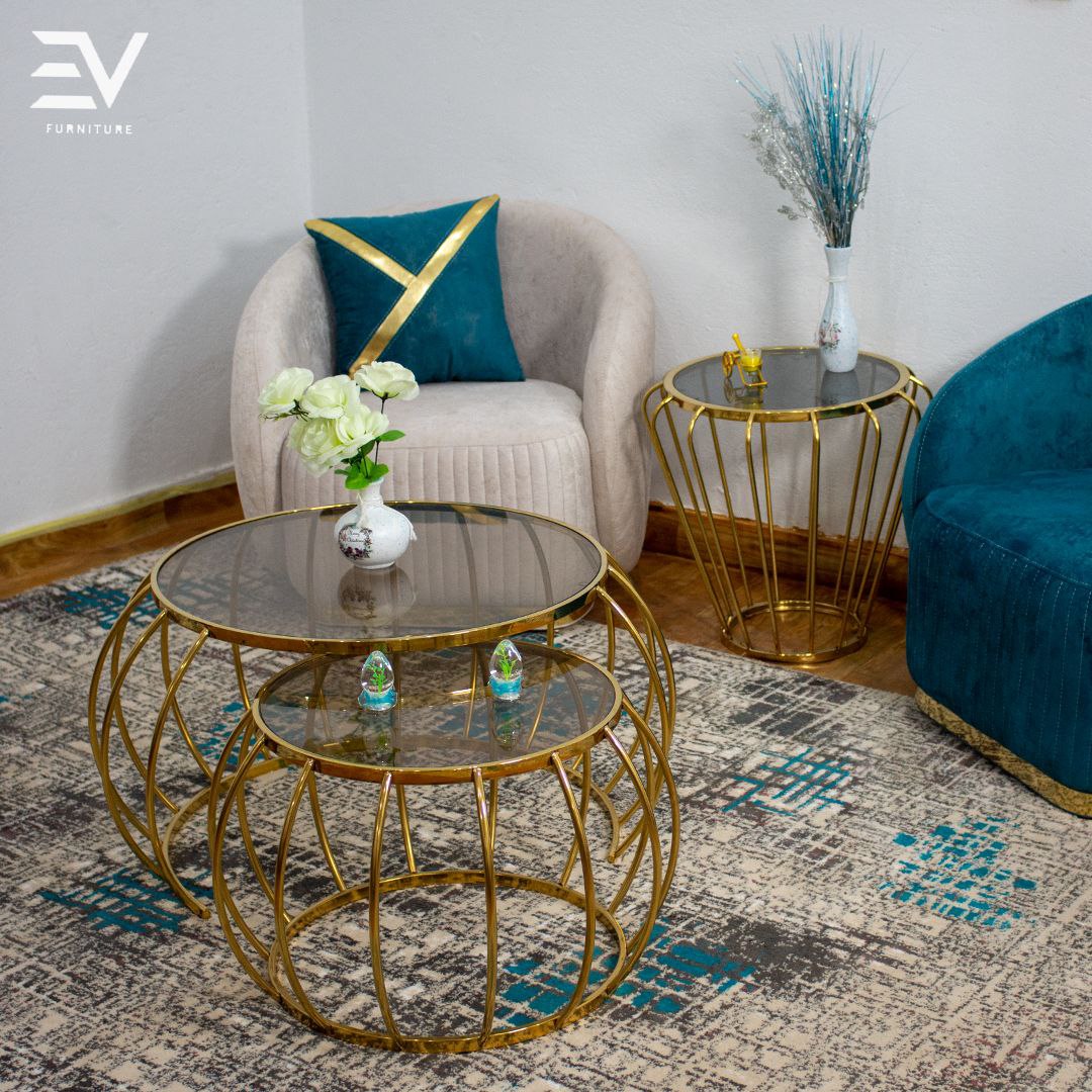 أضف لمسة من الفخامة والعملية إلى مساحتك مع طقم التربيزات المتداخلة العصرية. تتكون المجموعة من تربيزتين بأحجام مختلفة يمكن استخدامهما معًا أو منفصلتين لتناسب احتياجاتك. مصنوعة من الاستانلس ستيل 304 المختوم، مما يمنحها مقاومة عالية للصدأ والتآكل مع متانة تدوم طويلاً. يعلو كل منهما سطح من الزجاج الفاميه بسُمك 6 ملم (طبقتين)، ليمنحها مظهرًا راقيًا ويناسب مختلف أنماط الديكور.